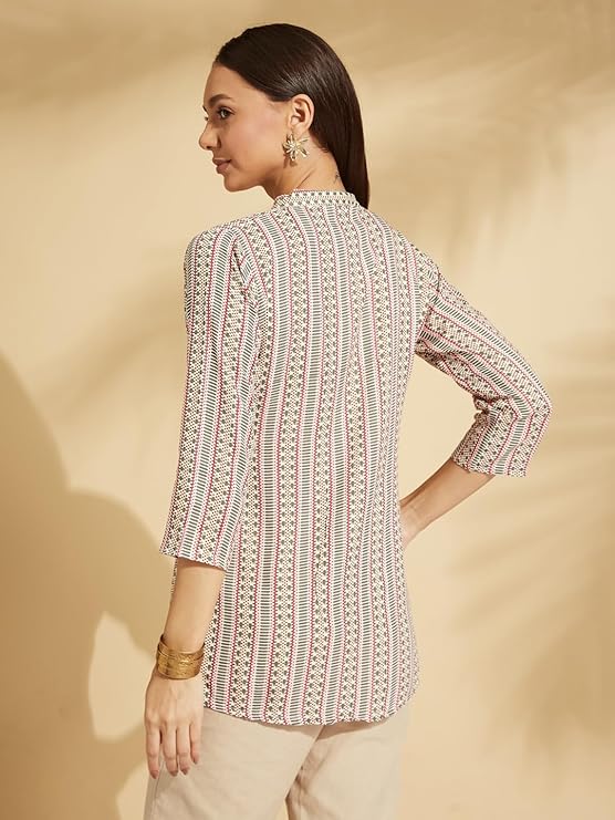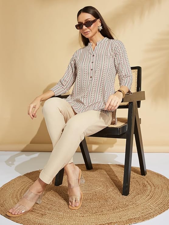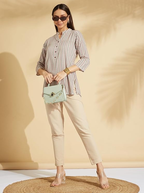 • Pattern : Straight hem, button closure, stripes printed tunic