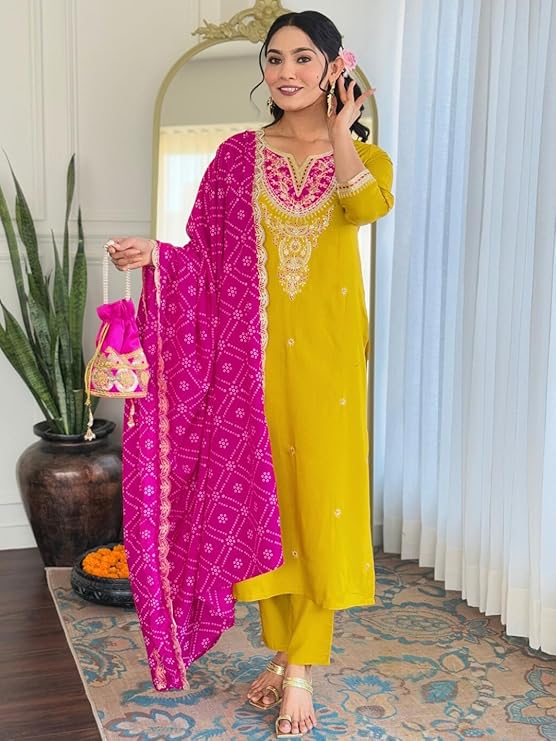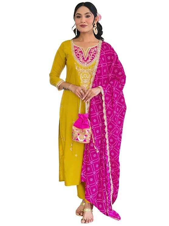 • Package Contains:- 1 Set : KURTA, PANT AND DUPATTA
