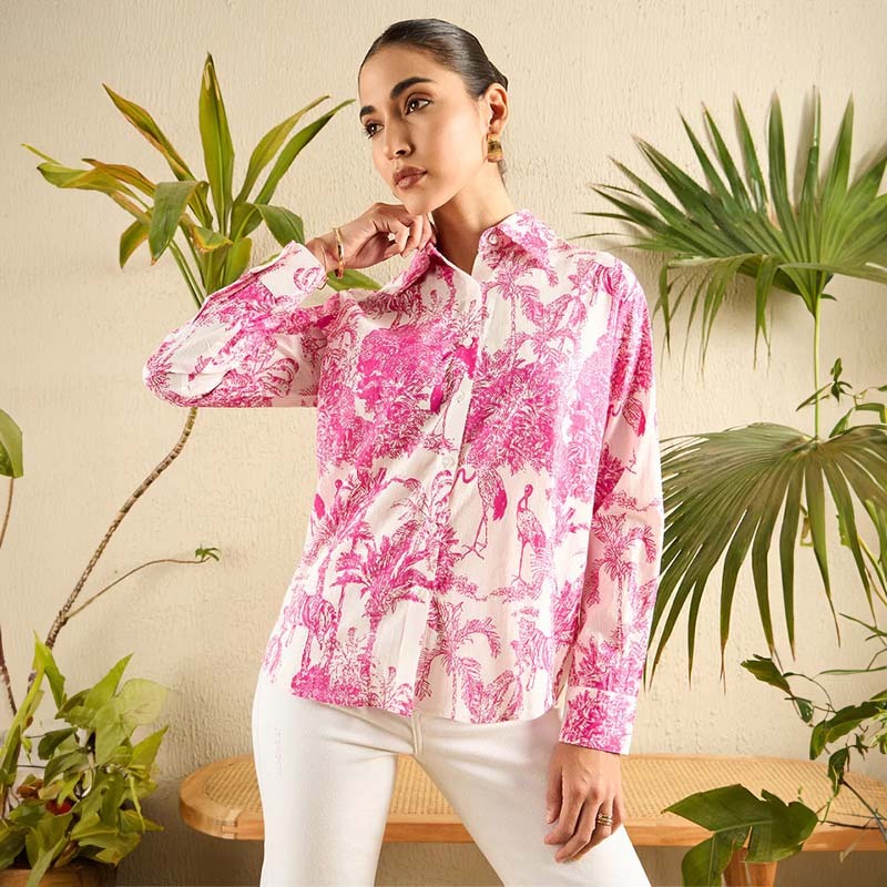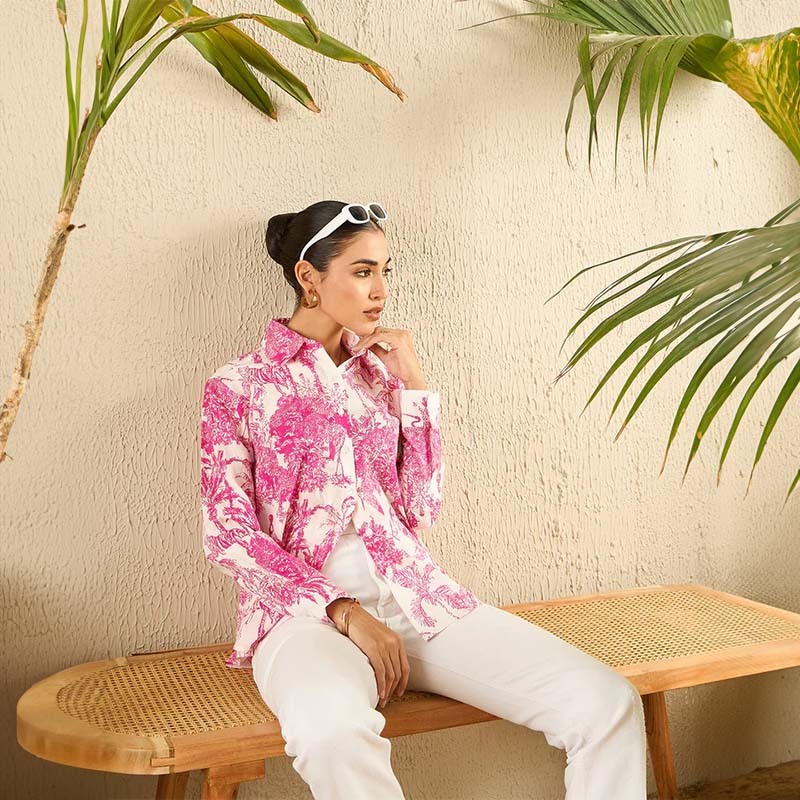 This Printed Cotton Shirt is a versatile necessity! Wear it on top of a plain shorts and crop top set, or style it buttoned up over blue jeans, or tuck into a pair of white shorts – the possibilities are endless!