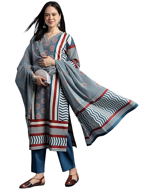 Be the first to review “RAJMANDIRFABRICS Women’s Cotton Floral Hand Block Printed Straight Kurta Set with Palazzo Pant & Dupatta” Cancel reply